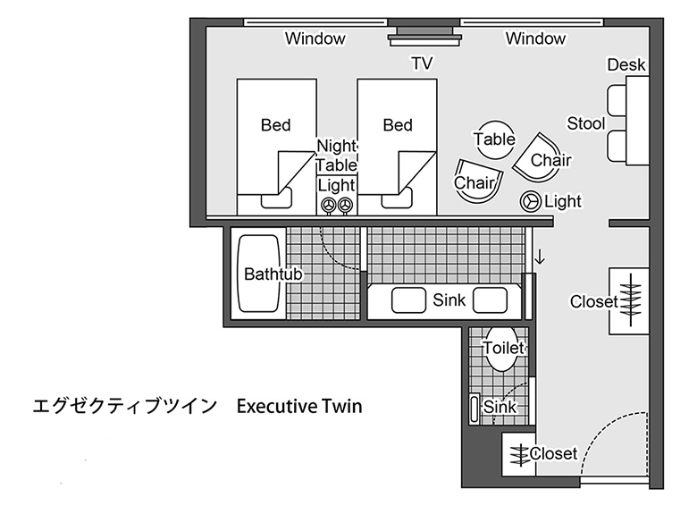 Bed size: 2 beds, W 110 cm × L 195 cm / 1 bed, W 100 cm × L 185 cm (extra bed)
