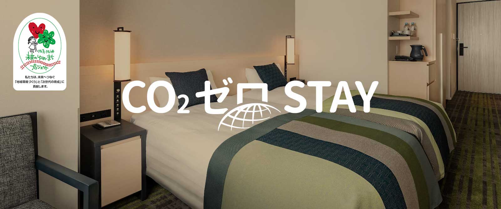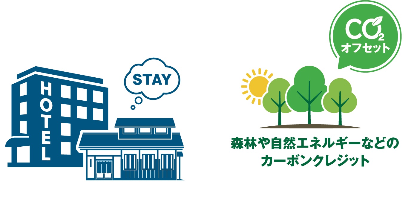 国の認定制度「J-クレジット」※を活用し、宿泊時に生じるCO₂の排出相当量を森林保全や環境保全活動に投資することで、オフセット(埋め合わせ)する宿泊プランです。環境負荷の軽減や、CO2排出量削減にも貢献ができます。