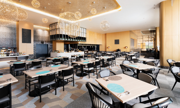 豊富な料理と開放的な空間で、優雅な時間を過ごすビュッフェレストラン。
