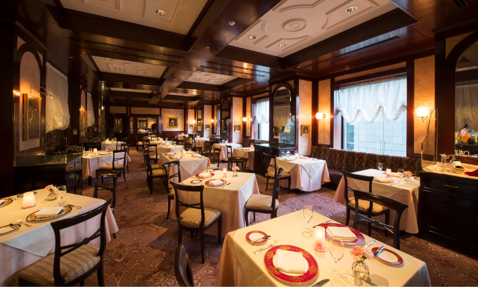 クラシカルな店内が魅力のホテルのメインダイニング。