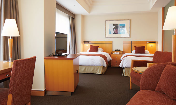 東側のコーナーに位置しており、リゾート感覚で眺望をお楽しみいただけます。ツインでは最も広いゆったりとしたお部屋です。