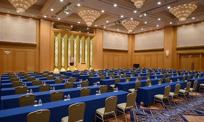 中四国最大クラスの規模を誇るダイナミックな空間は、世界のVIPが集う国際会議から大規模なレセプションまで、多目的にご利用いただけます。