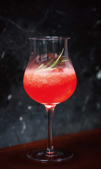 ローズマリー香る苺のダイキリ。 心地よい香りで癒される一杯。 料金 1,800円