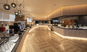 ライブ感溢れるオープンキッチン型の料理コーナーを備えた大型ブッフェレストラン。和洋中料理からスイーツまで、バラエティ溢れるお料理をお楽しみいただけます。爽やかでシズル感溢れるシンプルモダンなダイニング空間でお食事をお楽しみください。