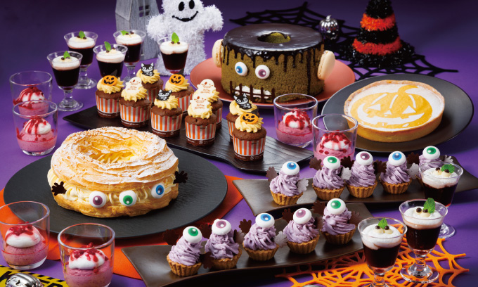 ジャックランタンやおばけのスイーツ、紫芋やかぼちゃ、栗を使った秋の味覚が勢揃い!
