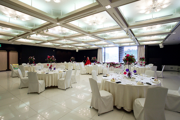 邸宅をイメージし、石の照明や自然光差し込む、魅力あふれる会場です。