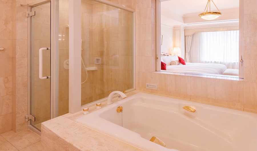 ジュニアスイートダブルは、19階の「プルミエールフロア」にあり、通常よりも高めの天井に落ち着いた色調のインテリア、ゆとりあるサイズのベッドが置かれ、広々としたバスルームには独立したシャワーブースなど、心地よくご滞在いただけるくつろぎの空間です。