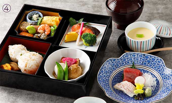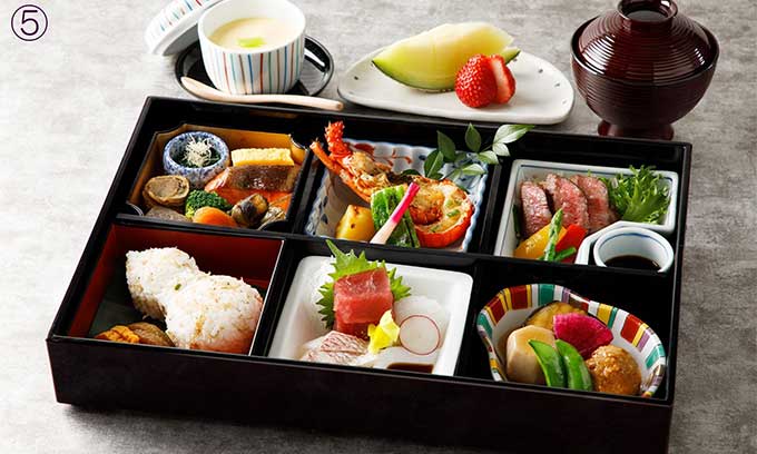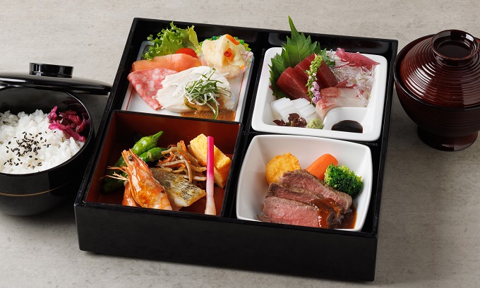 ●弁当 四枡(お造り、牛肉のステーキ、焼き物、御飯)