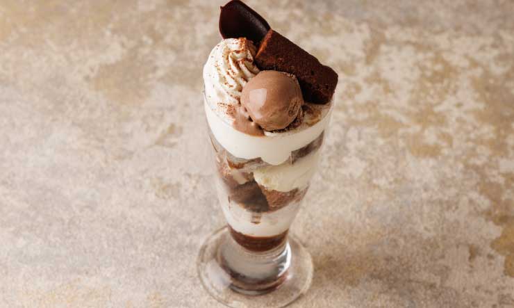 ほろ苦いコーヒーゼリーを3種のアイスと合わせたパフェ。