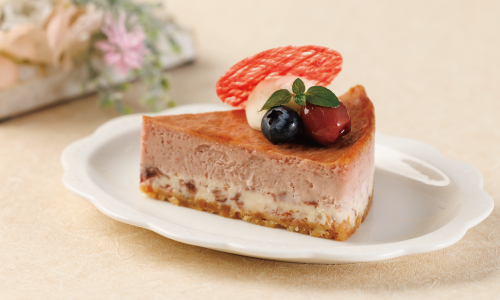 グリオットチェリーのピューレとサワーチェリーを加えたほどよい酸味のチーズケーキ。