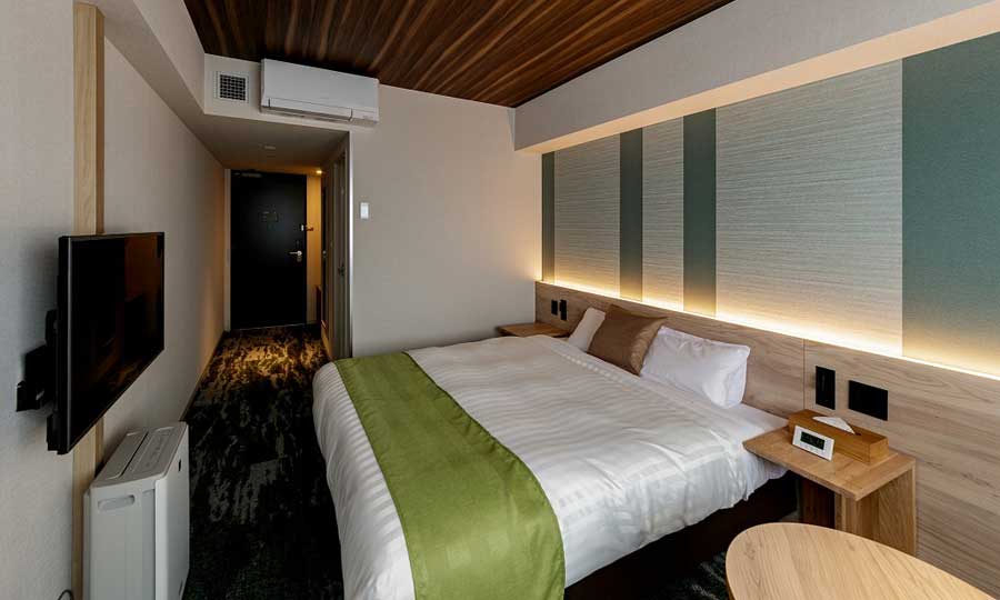 客室のベッドはシモンズ製ベッドを採用しており、心地よい睡眠をご提供いたします。更にお部屋は21.2㎡~とゆったりお過ごしいただける広さとなっております。