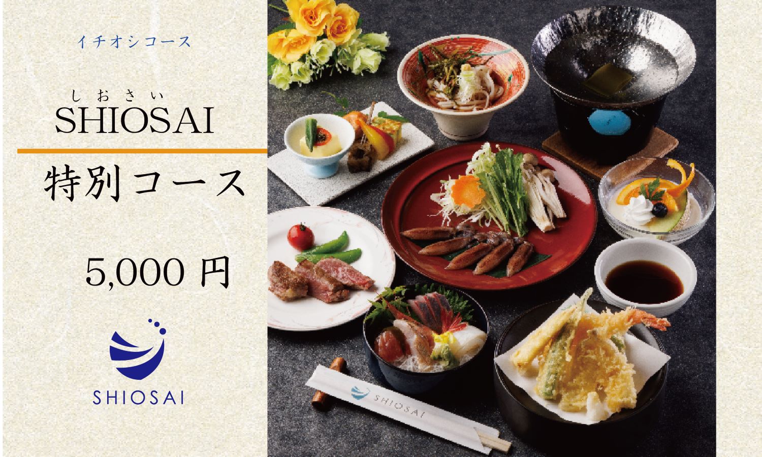 前菜・造り5 種・小鍋・牛ステーキ・天ぷら盛合せ・蒸し物・氷見うどん・デザート