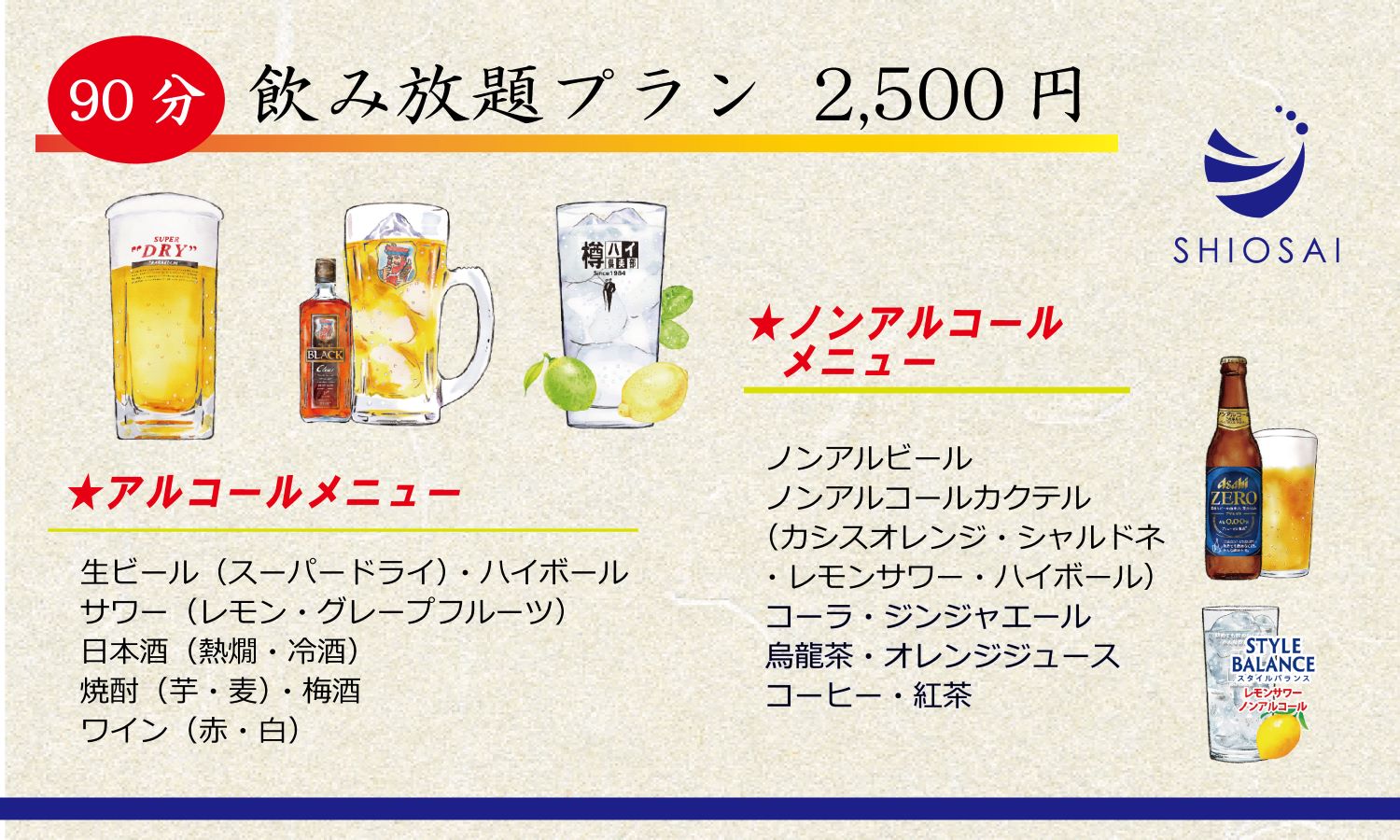 生ビール・日本酒・焼酎・ハイボール・サワー・梅酒