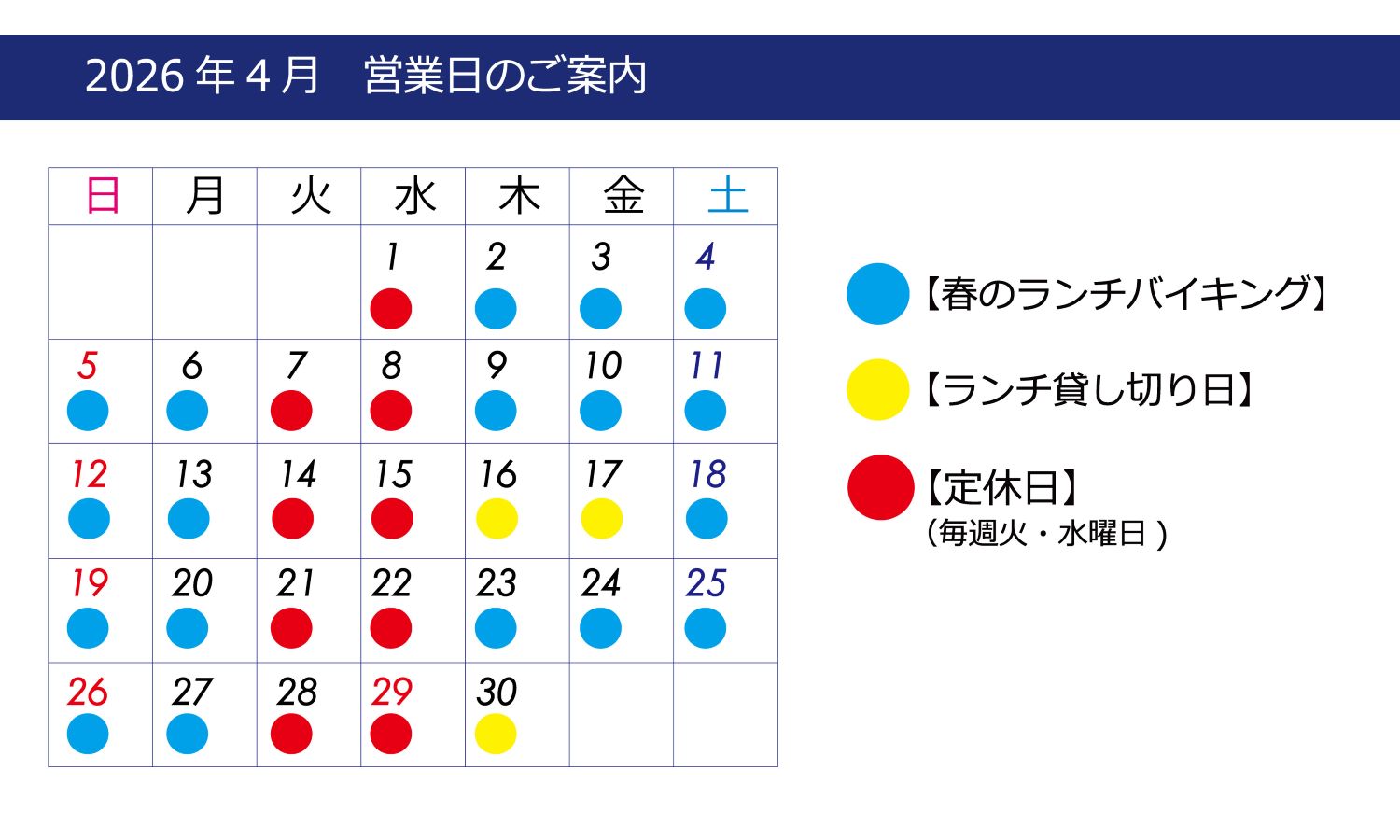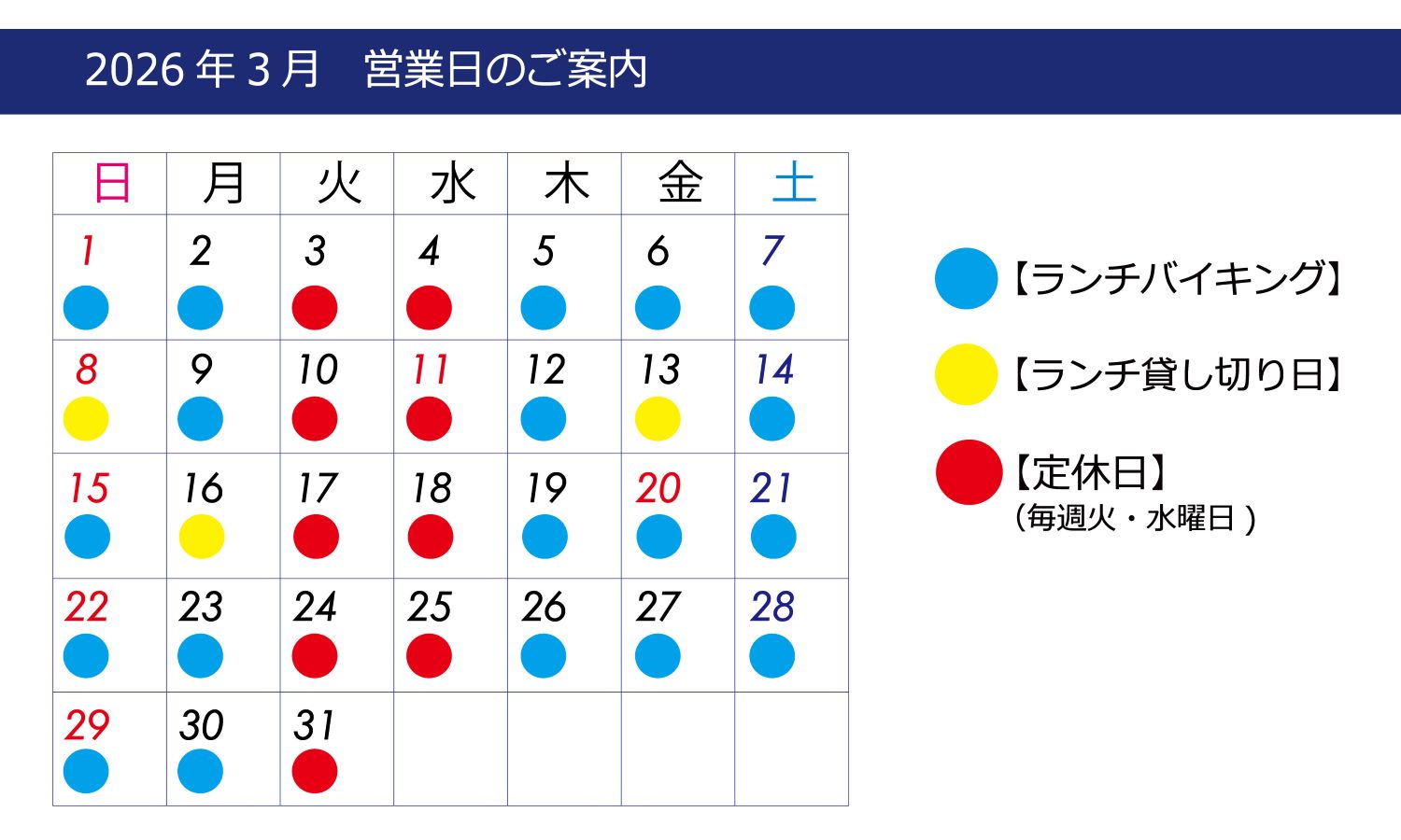 【ランチ営業のご案内】