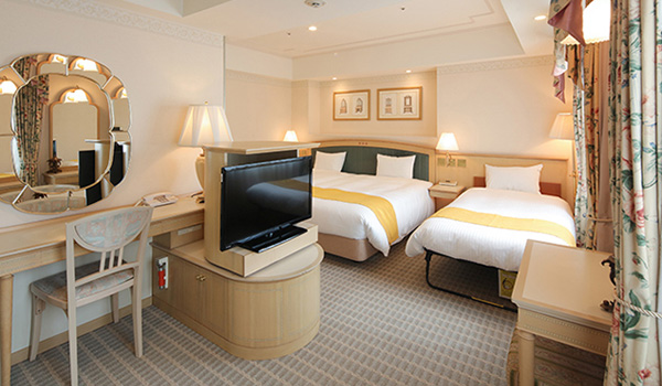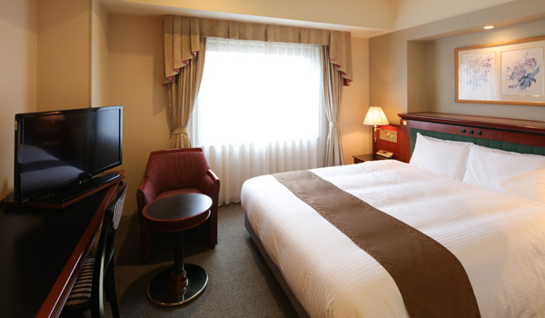 客室はシックなインテリアで落ち着いた色調にコーディネイト。42㎡のゆったりしたお部屋で、バスルームにはシャワーブースを備え、まさにエグゼクティブと呼ぶにふさわしい機能的空間をご提供いたします。