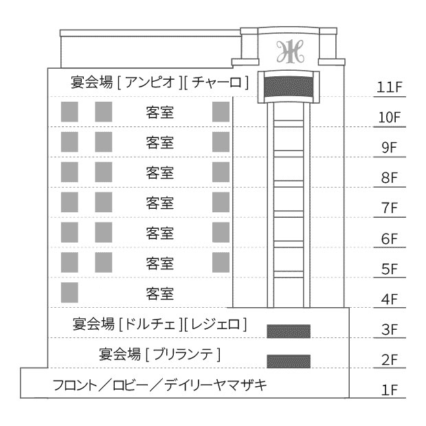 チャペル・ 宴会場・ 自動販売機・ 製氷機・ 会議室・ コンビニ・ ブライダルサロン・ コインランドリー
