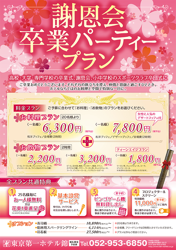 それぞれの旅立ちを控え、 仲間と恩師と過ごす一時を、ぜひ東京第一ホテル錦で… 心に残る時間をお届けします。