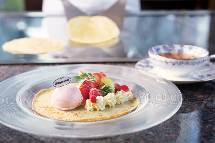 鉄板で仕上げるパフォーマンスデザートをご用意しました。