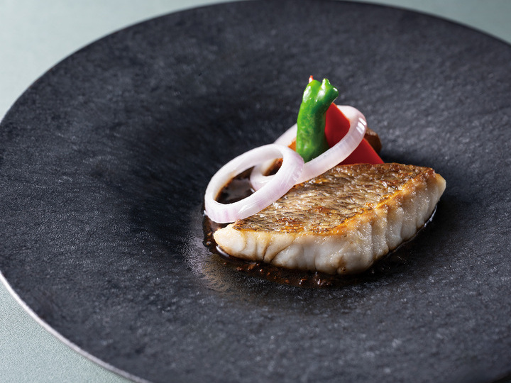 ・真鯛の煎り焼き 発酵黒豆ソース