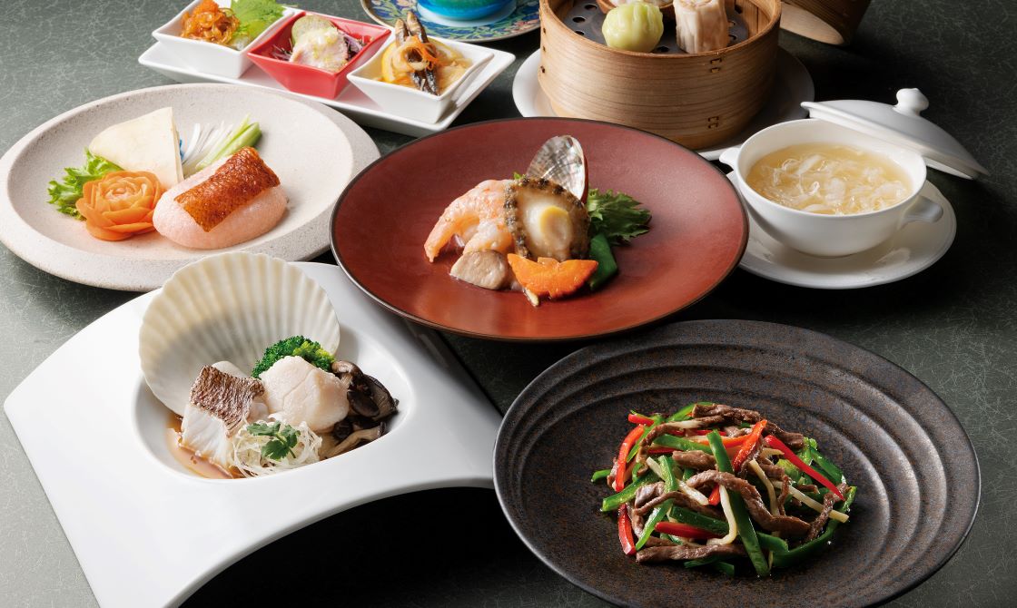 ふかひれスープ、北京ダックから、鮑と海老の炒め物に、国産牛のひと品、鯛・帆立貝柱の蒸し物まで。