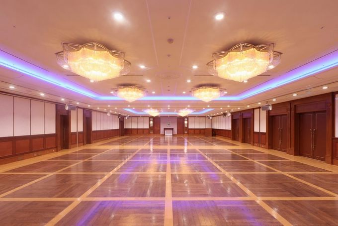 開放的な高い天井とホテルならではの優雅さとスケールを感じさせる会場は、各種宴会や披露宴を華やかに彩ります。