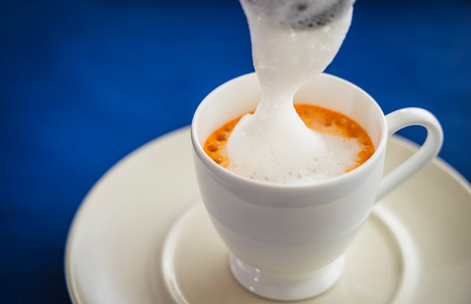 仕上げはお客様の目の前で。渡り蟹をまるごと使った濃厚ビスクに繊細な泡をまとわせたカプチーノ仕立ての一皿をどうぞ。
