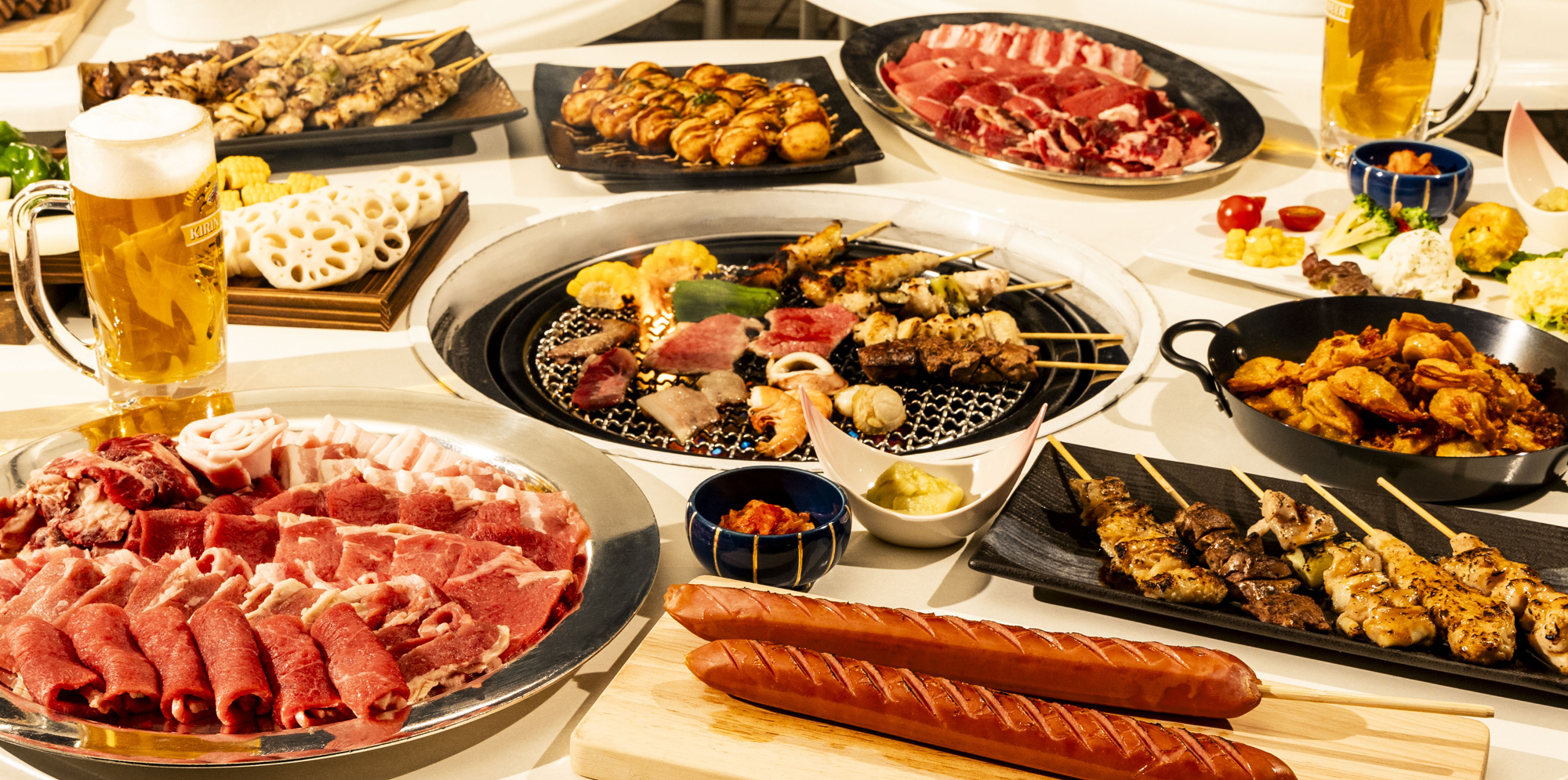 B.B.Qとサイドメニューの食べ放題・飲み放題。開放的な6階の屋外テラスでお楽しみいただけます。
