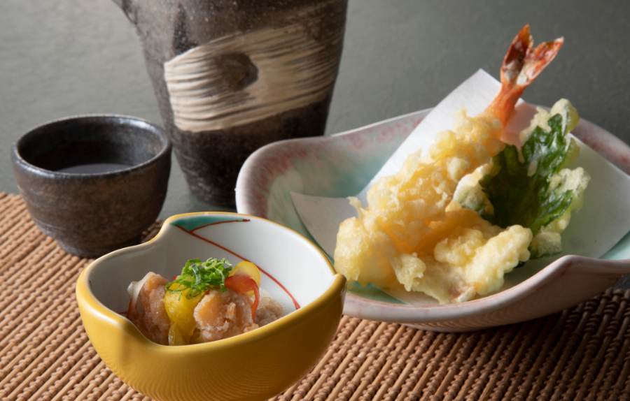 日本酒一合 または 生ビール一杯と 本日の小鉢+海老の天麩羅他二種 または お造り一種盛り