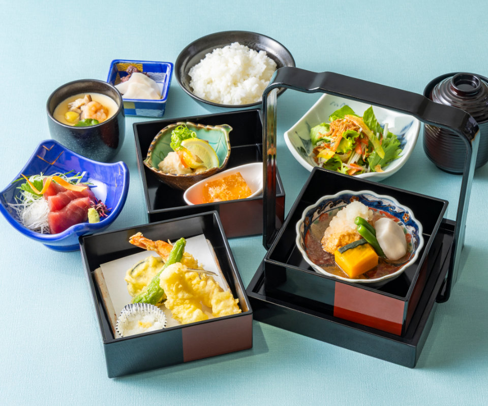 ランチ(平日限定) 瀬戸御膳 美味しい総菜を少しずつ楽しめます 一般料金 2,400円 会員料金 2,160円 前菜 本日の小鉢 蟹煮凝り 煮物 真鯛霙煮 里芋 南瓜 青味 揚物 天麩羅盛り合わせ 海老 小河豚フグ 野菜二種 富士おろし 天出汁 〈外膳〉 造り 本日のお造り一種盛り あしらい一式 鉢物 サラダ フライドオニオン 柚子ドレッシング 蒸物 茶碗蒸し 食事 白ご飯 香の物 汁物 赤出汁 予約する 予約・お問い合わせ 日本料理 音戸 TEL 0823-20-1118 お問い合わせ