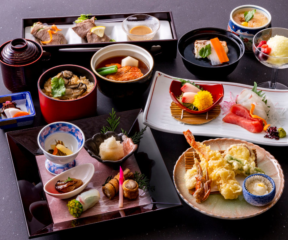 季節の食材を使った品々を、華やかに彩った会席料理をご用意。接待や大切な人とのお食事におすすめです。