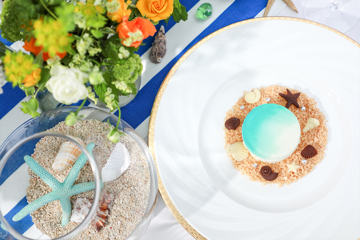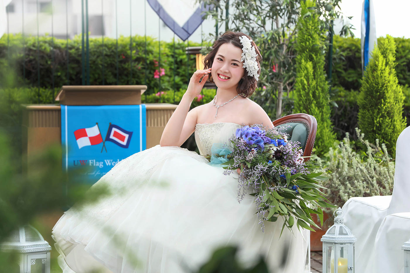 青空の下、開放的なガーデン挙式と、このプランだけの演出が付いたプラン。