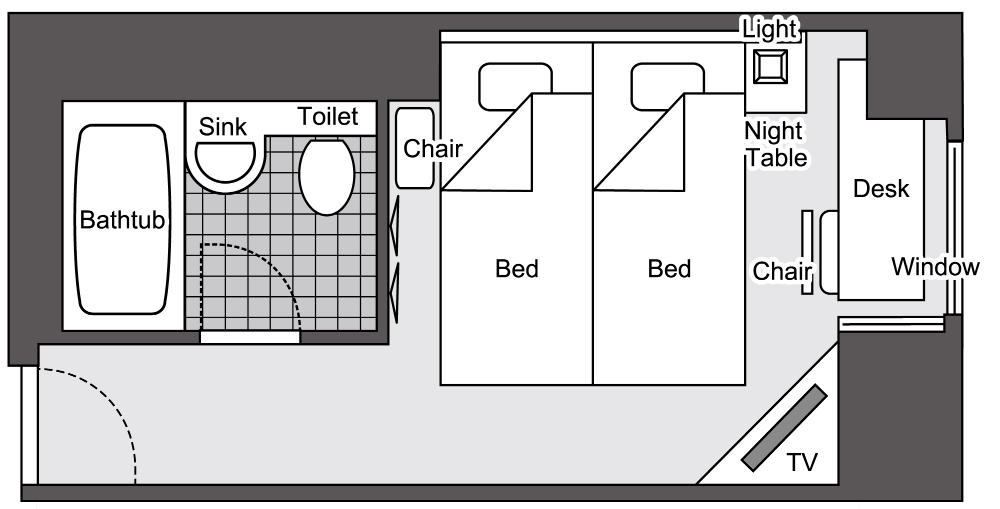 コンパクトサイズのツインルーム(18.2㎡)