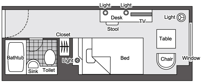 スタンダードタイプのシングルルーム(16.5㎡)