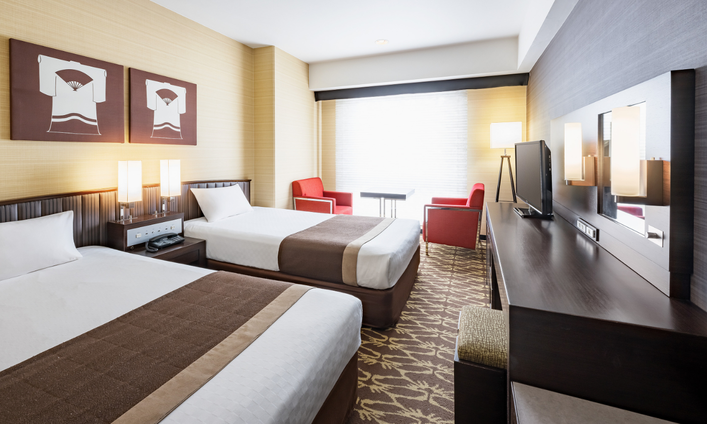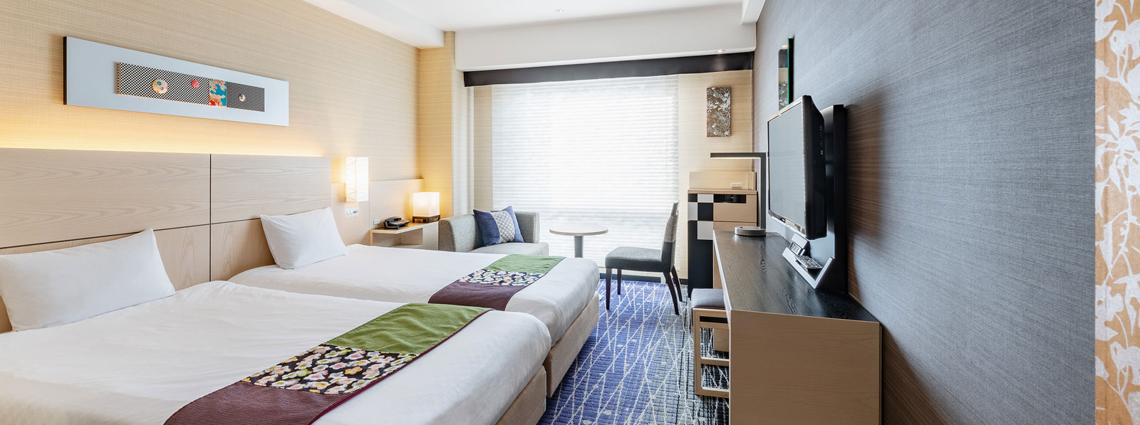京都の伝統工芸をデザインに取り入れた客室。ソファベッドのご利用で3名様でもご宿泊可能です(22.5㎡)