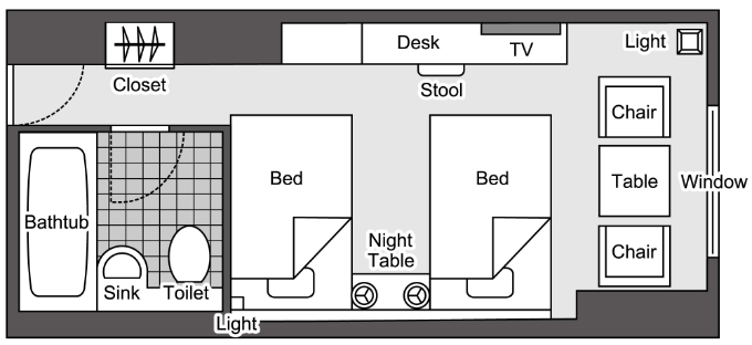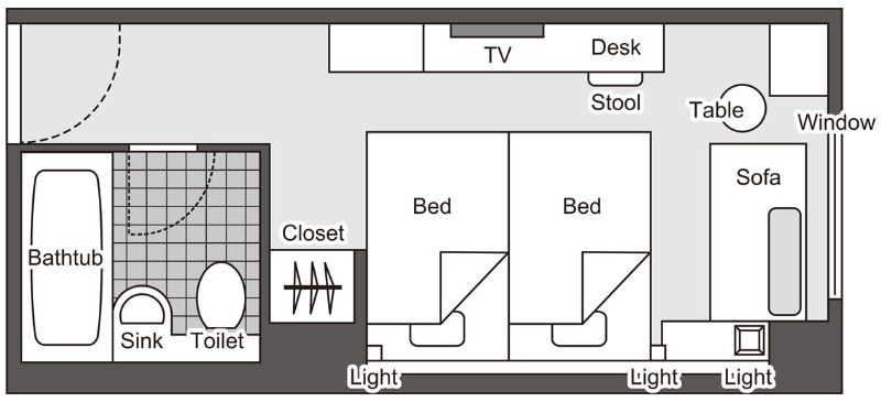 ※客室の画像および間取り図は一例です。部屋によっては、家具など実際と異なる場合がございます。