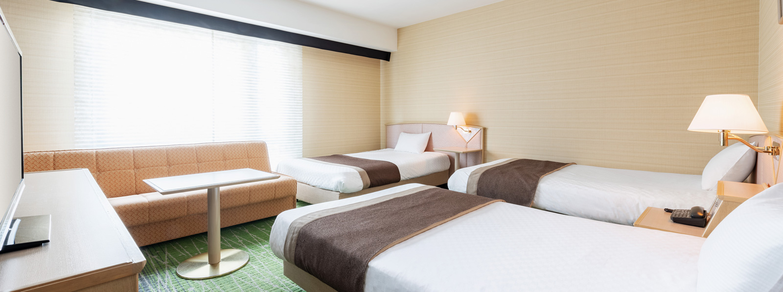 ゆったりとした広さのトリプルルーム。ソファベッドのご利用で4名様でのご宿泊も可能です(29.9㎡)