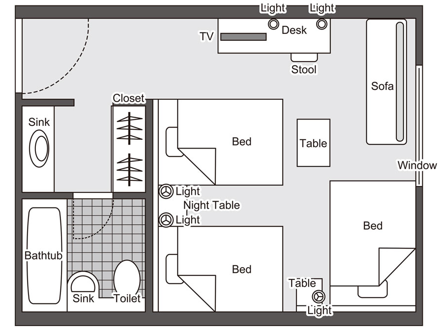※客室の画像および間取り図は一例です。部屋によっては実際と異なる場合がございます。