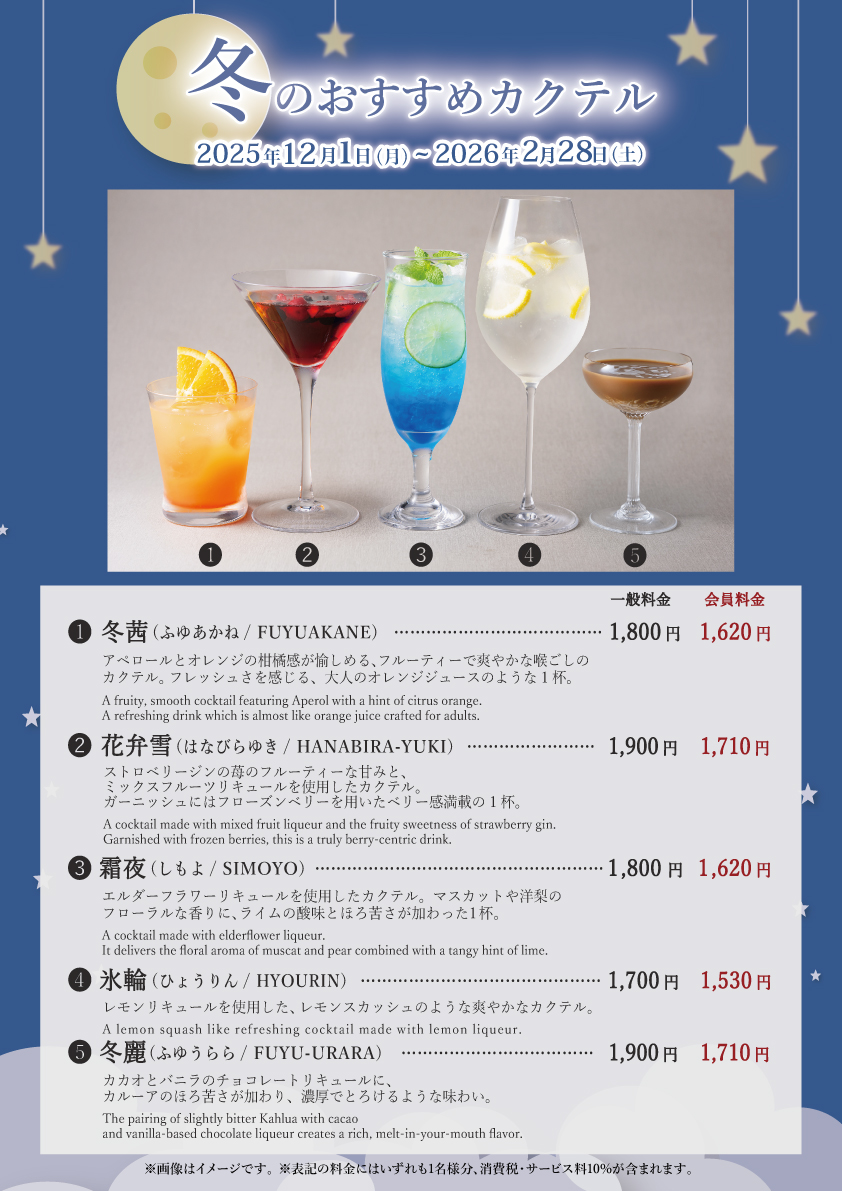 冬のカクテル全5品をご用意