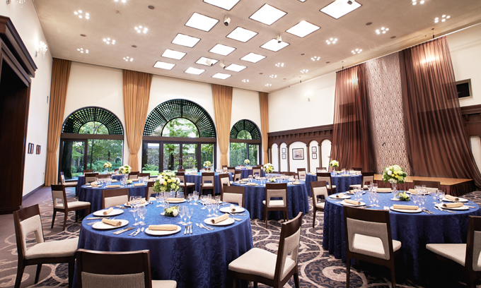 天井高6.2mの開放感と隣接するプライベートガーデンが魅力の会場。講演会をはじめ、懇親会、同窓会など各種パーティにもご利用いただけます