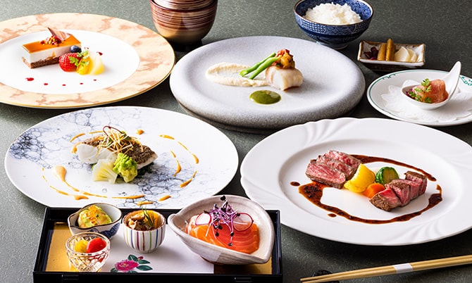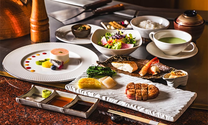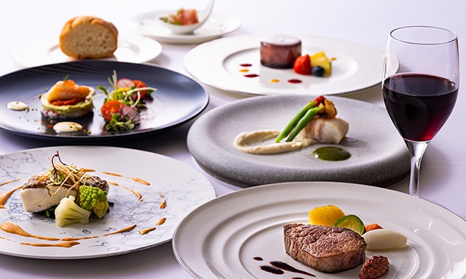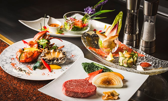目の前で焼き上げる鉄板焼・季節変わりのフランス料理で、特別な日を華やかに彩ります。