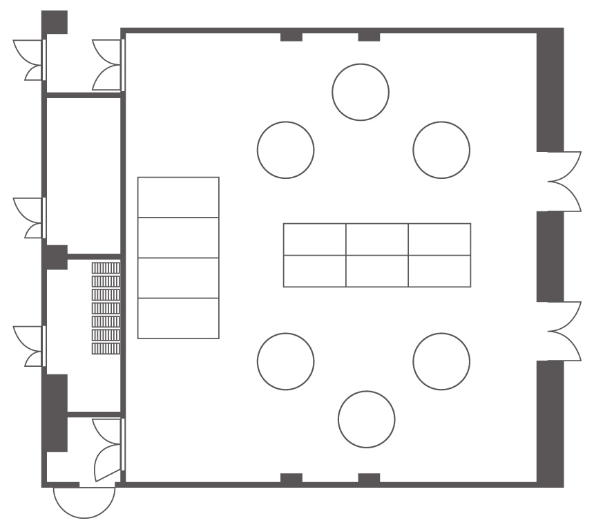 ウッド調で落ち着いた空間の「詩月」。 ビジネスユースや少人数のパーティーなど、人数や目的に合わせてご利用いただけます。