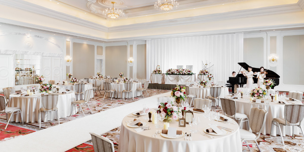 シャンデリアが輝く優美なバンケットホールでおふたりだけの特別な挙式を