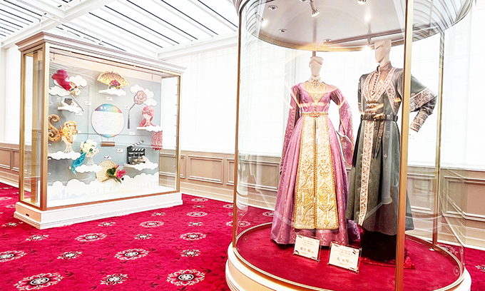 - 特集展示 特集テーマに基づいて実際に使用された宝塚歌劇の小道具や衣装を展示(支配人 憧花ゆりの監修)