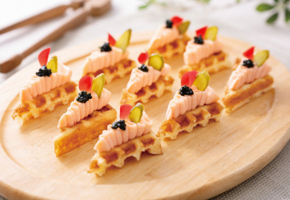 その場で仕上げるライブ感とともに楽しむ、華やかなデザートも。