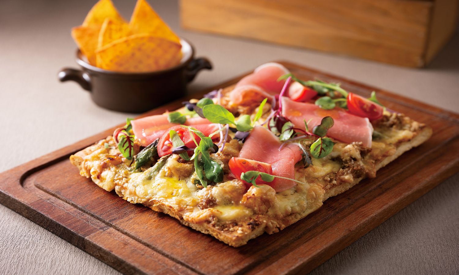 ピザ・ジェノベーゼ 生ハムとツナを添えて