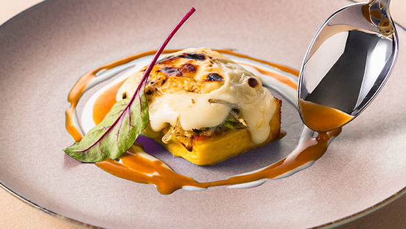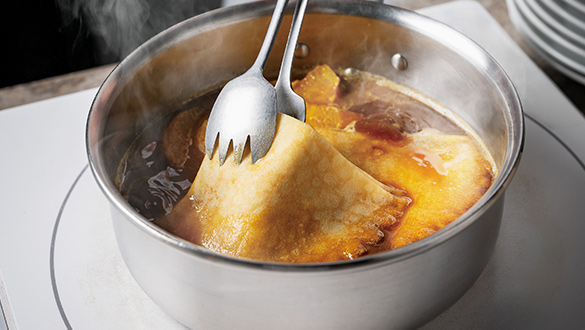 シェフが目の前で仕上げるパフォーマンスとともに
