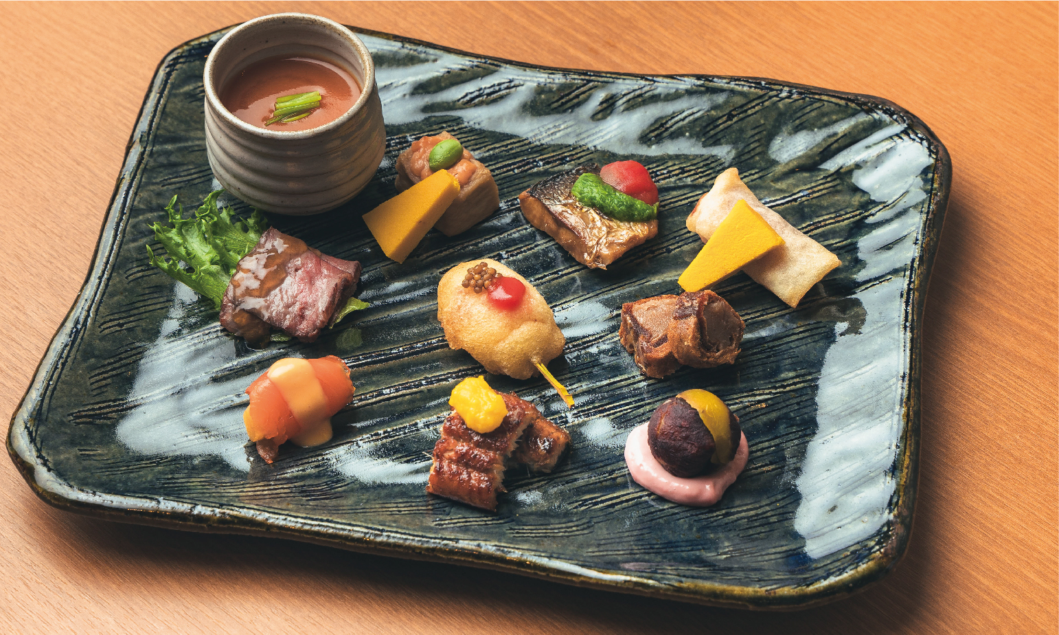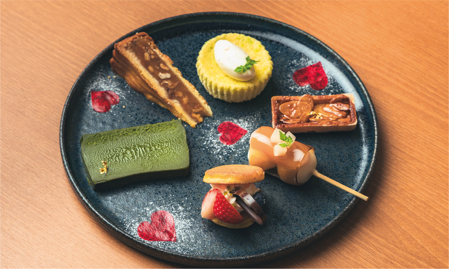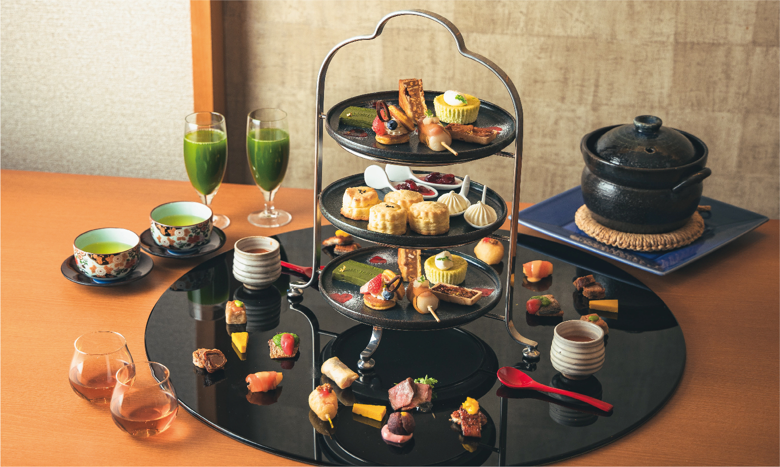 大きなプレートとスタンドに散りばめられた“和”の味わいを心ゆくまでお愉しみください。