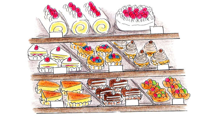 「もう今日はママのお誕生日だから、どれでも好きなのを買ってあげちゃう」ほとんど指輪を買ってあげる勢いで、ママのご機嫌を取るおじさまたち。ショーケースに見えるのは、宝石と見紛うばかりのきらびやかなパティスリーだ。