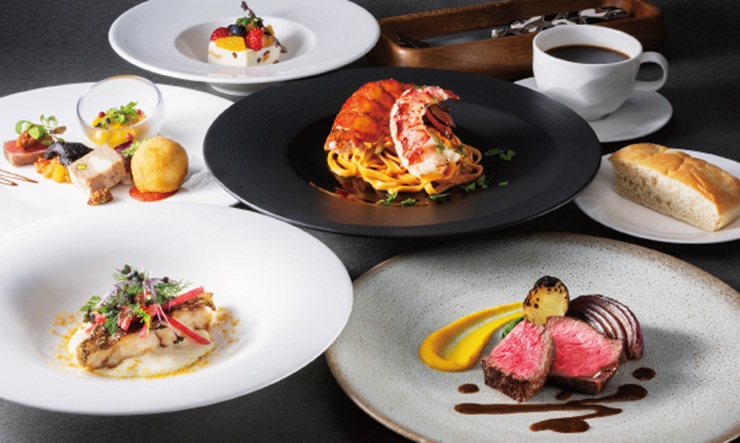 オマール海老を添えたタリオリーニや黒毛和牛など