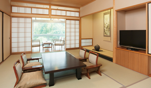 Arima View Hotel renovated Taiko-no-Yu and premium bedrock bath, Taiko-Yume-Juraku, as a historical Kur-theme-park in Feb. 2014, which are all free during your stay. We promise to give you peaceful time providing elaborate floor display with a motif of Waka (Japanese poem) and Kirie (Japanese-style collage), in-season dishes, and well-known hot spring that relates to Taiko.